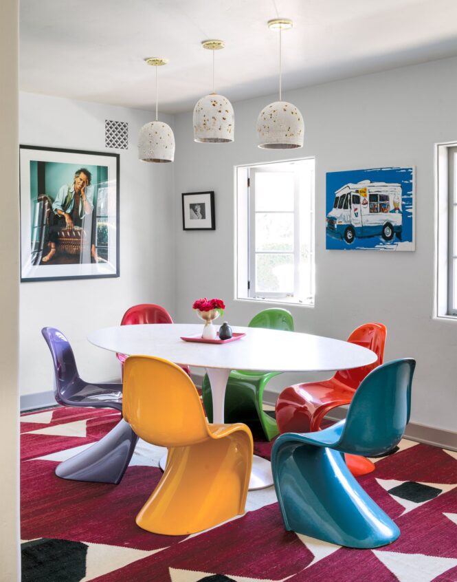 – استفاده از پالت رنگی رنگی ، به عنوان مثال برای کوسن مبلمان می توانیم چند رنگ مختلف را در نظر بگیریم و از رنگ هایی مانند قرمز و زرد برای جلب توجه استفاده کنیم .